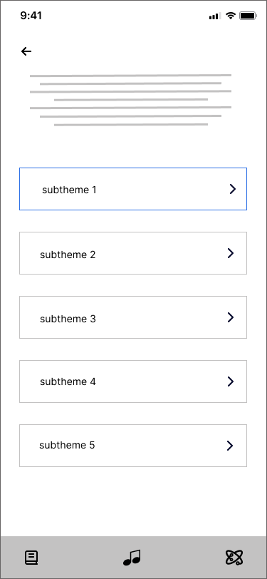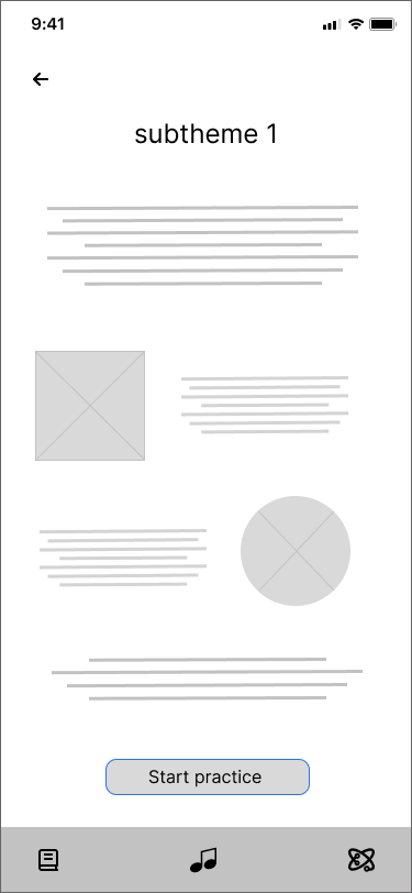 Lo-fi wireframes helped me translate initial sketches into digital form and refine the overall structure of the app, which is represented by three main parts: