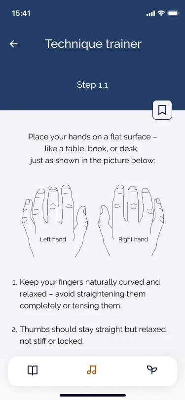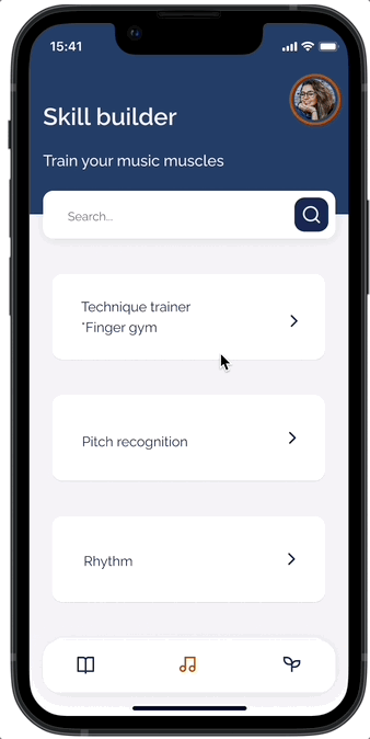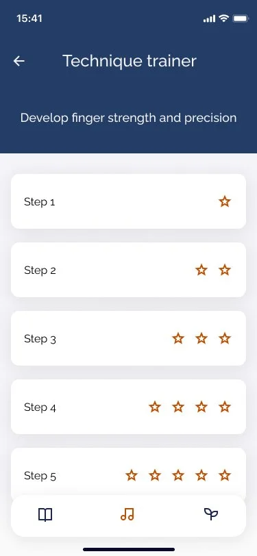 One of the key modules is “Finger Gym” - a technique trainer designed to help users build proper playing technique from the very beginning.