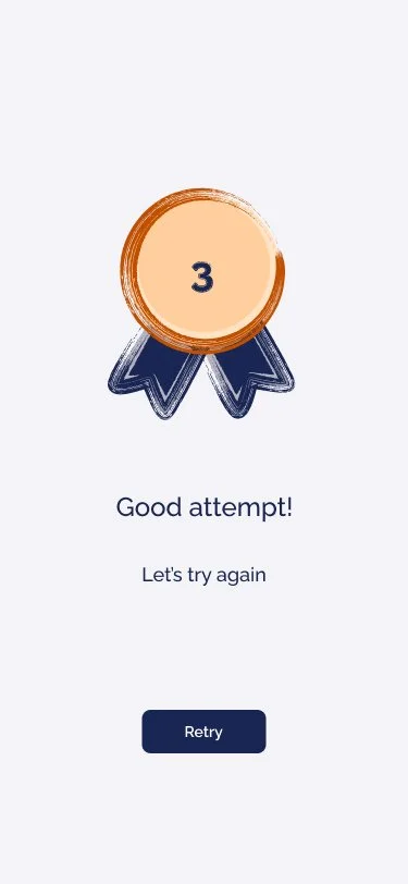 If the timing is incorrect, the “Retry” option encourages iteration, enabling users to repeat the exercise until they feel confident and achieve mastery.