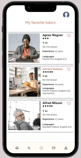User interacts with an Tutoring service app focusing on the overall user experience (context, needs, and emotional engagement)