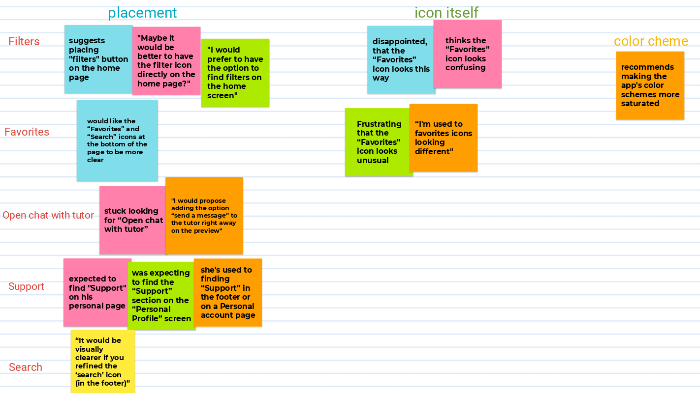 Users want more intuitive access to the “Filters” section and clear icon visualization